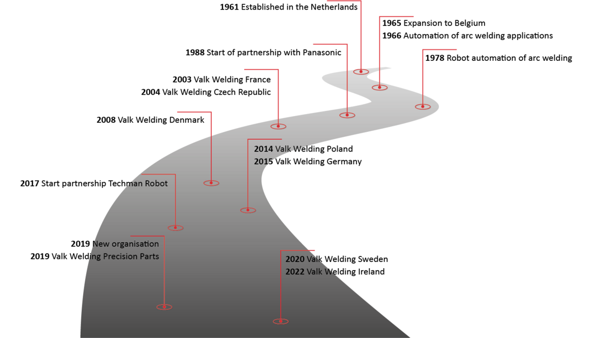 Valk Weldingissä “The strong connection” on avainasemassa. Tämä ei viittaa ainoastaan luomiimme vahvoihin hitsausliitoksiin, vaan myös läheisiin ja pitkäaikaisiin suhteisiin toimittajiemme, työntekijöidemme ja asiakkaidemme kanssa. Tämä mahdollistaa täyden tukemme ensimmäisestä yhteydenotosta lähtien.